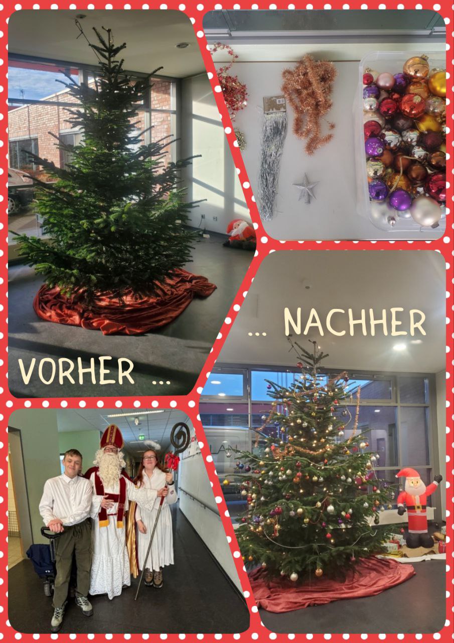 Unser Weihnachtsbaum im Eingangsbereich hat eine echte Glow-Up-Session hinter sich.