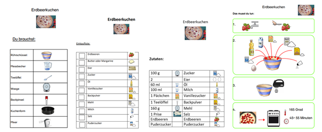 Mit Hilfe von Zutatenlisten konnten sie ihre Einkaufsliste schreiben, einkaufen, alle Vorbereitungen treffen und schließlich alle zusammen kochen und backen.